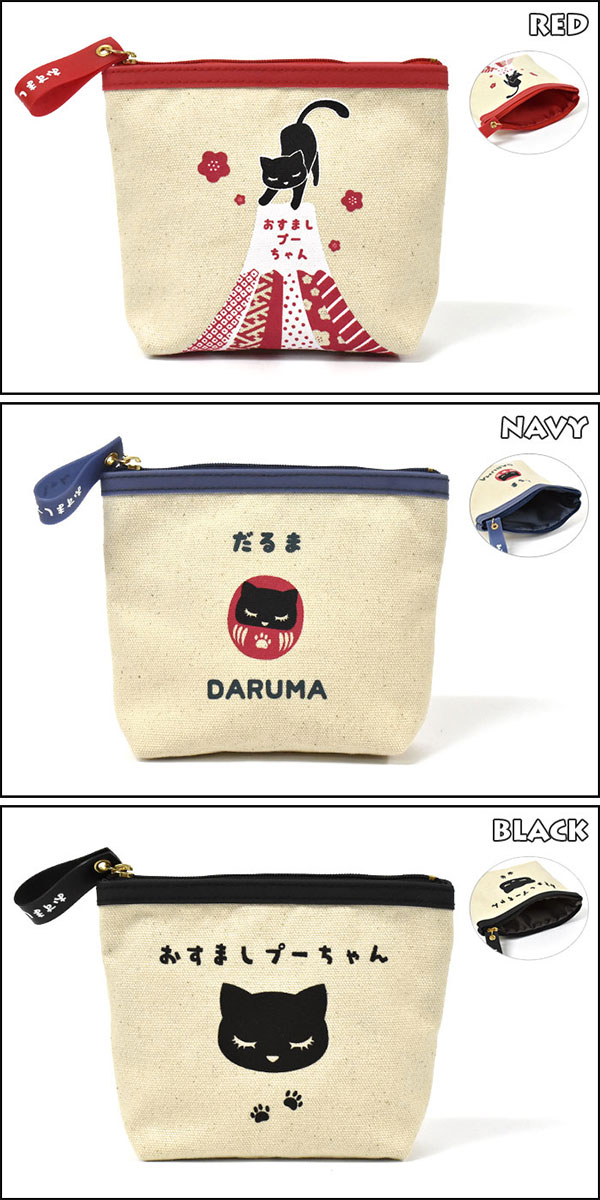 キャンバス 和プーちゃん ポーチ /レディース 女性 帆布 舟形 ミニポーチ ミニ コンパクト 小さめ 小さい 小物 軽い 軽量 コスメポーチ 化粧ポーチ 化粧入れ 小物入れ 可愛い かわいい おしゃれ オシャレ 猫グッズ 猫 ねこ 黒猫 プーちゃん おすましプーちゃん 和風 日本/