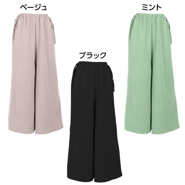 サイドリボンワイドパンツ レディース ボトムス ガウチョ ウエストゴム 大人 上品 美脚 光沢感 落ち感 ゆったり ワイドパンツ 秋冬 冬 ガウチョパンツ 黒 きれいめ ロング スカーチョ リボン 薄手 おしゃれ 大人カジュアル [M2381]【入荷済】
