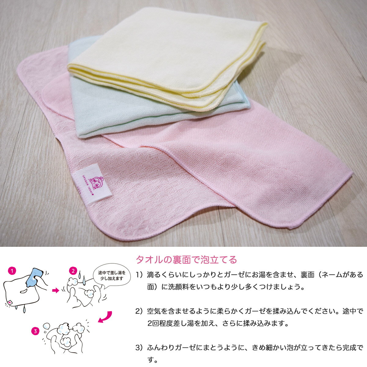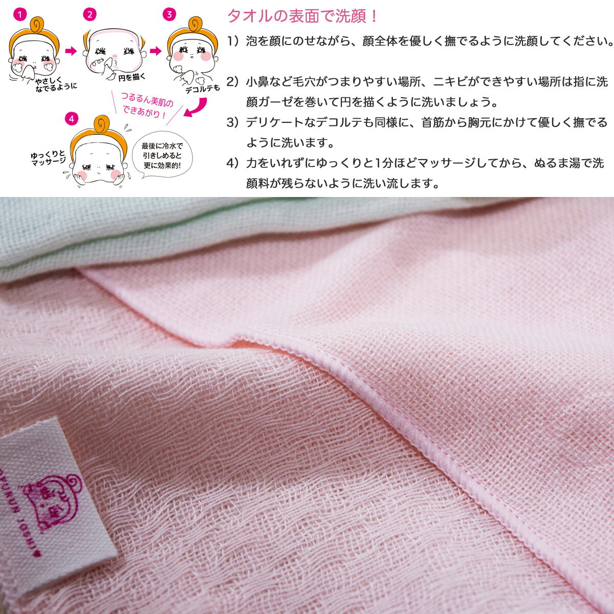 [セールP20倍]【メール便送料無料】おふるん女子 泡だつやさしい ガーゼ洗顔タオル[全3色][サイズ:約25×25cm]ガーゼ生地 吸水 速乾