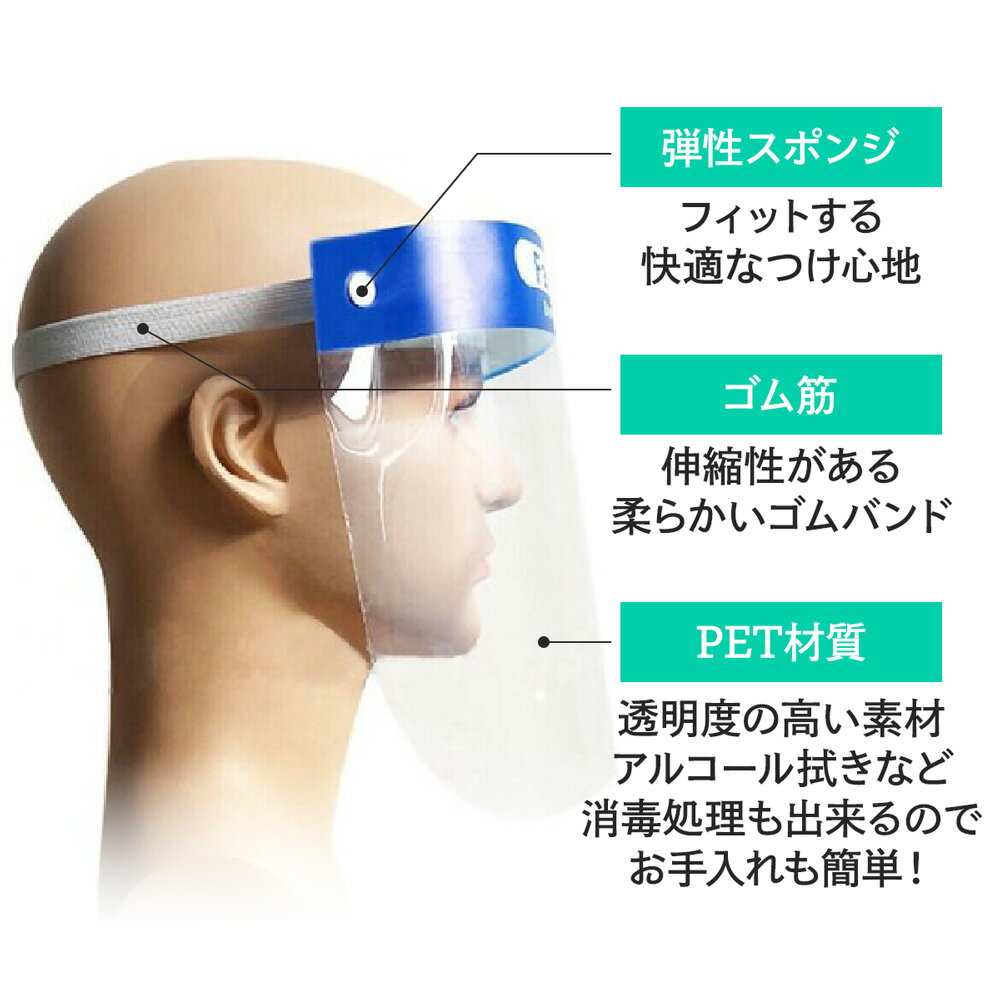 10%OFFセール中 【当日出荷】フェイス シールド 10枚セット フェイスガード 高品質 両面防曇加工 CE認証 簡易式 水洗い 感染予防 ウィルス対策 風邪対策 業務用 コンビニ 接客 カウンター業務 農作業 看護介護